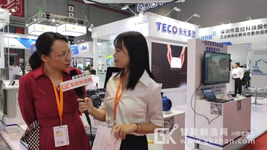 東元技術(shù)服務(wù)事業(yè)部IPTS處長(zhǎng)鄒英女士接受智能制造網(wǎng)記者采訪的畫面