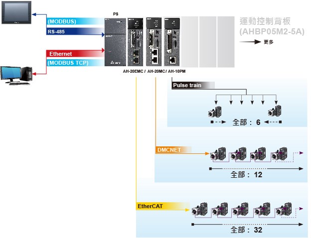 - DMCNET:12軸最小同步時間為 1 ms